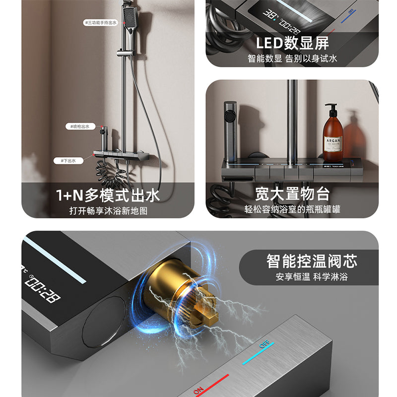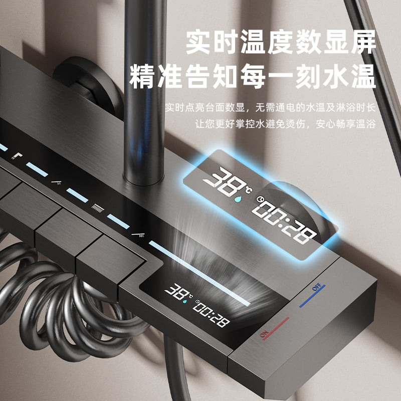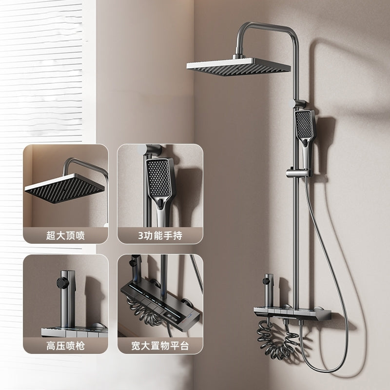 Nozzle: This is the core part, with various shapes such as round and square. The nozzle has many small water outlets, and the water methods are diverse, such as mist, massage, and rain shower.Handheld showerhead: Some showerheads come with a handheld showerhead that is connected via a metal hose and can be removed to rinse different parts the body. Valve and diverter: The valve controls the water flow, and the diverter switches the water flow between the overhead showerhead and the handheld shower.