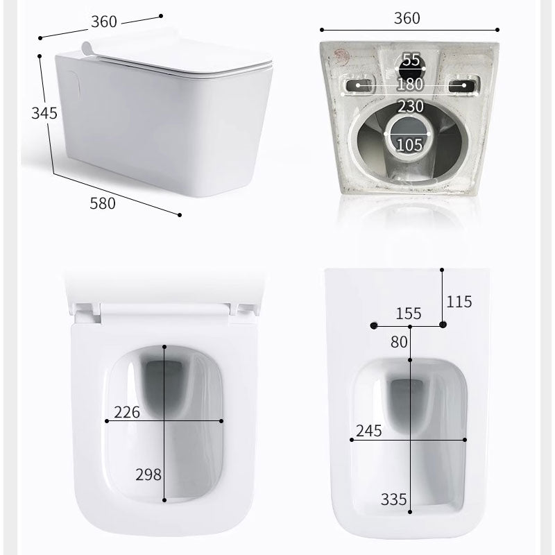 The wall-mounted toilet, also known as the wall-hung toilet or cantilever toilet, is characterized by its absence of a visible water tank, drainage, and its non-floor-standing design.Easy to clean: No sanitary dead corners, the floor can be cleaned with a mop, and the parts of the toilet that contact the ground and its are not easy to harbor dirt. Space-saving: Compact size, small footprint, suitable for small households, making the bathroom appear spacious.